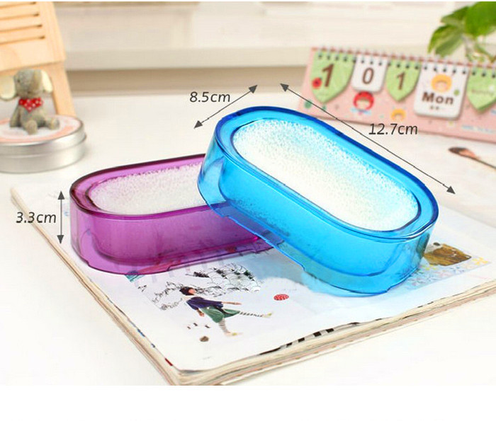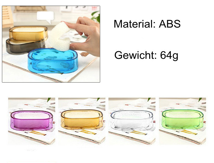 Beschreibung: der Seifenhalter ist aus ABS hergestellt, Maß ungefähr 12,7cmx8,5cmx3,3cm (LxBxH). Im Seifenhalter ist ein zusätzlicher Schwamm eingesetzt. Diese Besonderheit trägt dazu bei, dass die Seife nicht lange Im Wasser einweicht. Der Schwamm ist einfach zu wringen.